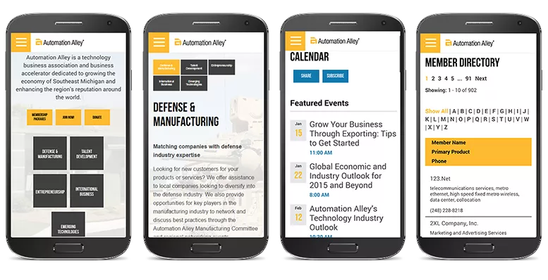 This project began with High Monkey conducting discovery workshops to help determine what Automation Alley was looking for in a new site. During these workshops High Monkey took a look at the old Automation Alley site and determined what content, documents and processes that would be considered when building the new site. As the discovery workshops came to a close we were able to come up with an Information Architecture from which the new site would be built! A large aspect to this project was the need for responsive design. With the amount of individuals now using smart phones & tablets to view webpages, it was important to Automation Alley that their site would be easily rendered to view pages via the web, phone devices, or one of the various tablets that are available. Built within Kentico are responsive design templates which help to render each page to fit the device you are viewing the site from!
